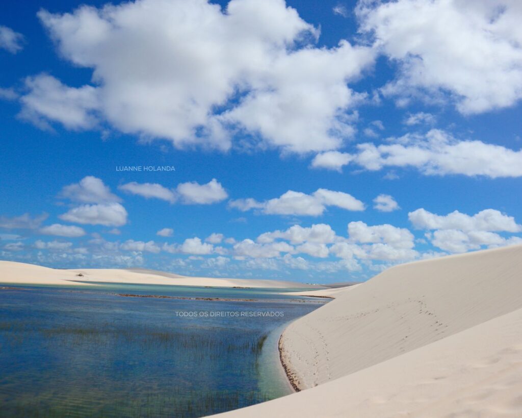 As paisagens impressionam não só pela beleza, mas pela paz que provocam. Passo sempre bons minutos olhando o vento percorrer as dunas nessa imensidão de areia branca. O encontro da areia com as lagoas de tons intensos tem uma harmonia linda. É de arrepiar, de emocionar! Uma experiência multisensorial. A textura da areia, os raios de sol brilhando na lagoa e esquentando a pele, o mergulho revigorante nas águas cristalinas. Nos Lençóis a gente sente muito antes de entender. Por isso quem vem sempre se apaixona!